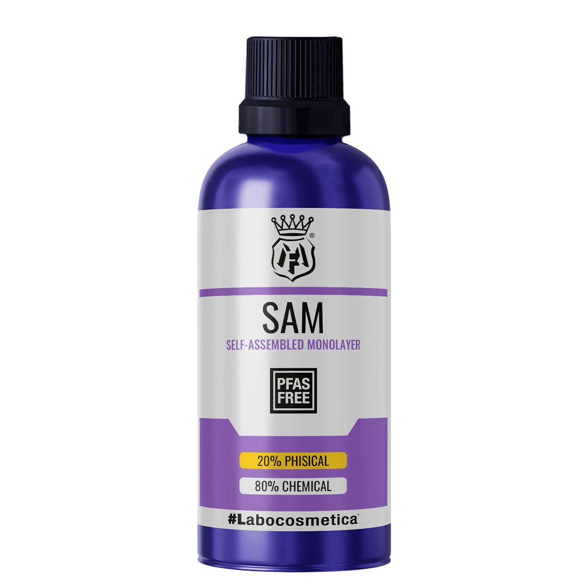 SAM è un tipo di coating stand-alone che grazie alla tecnologia Self Assembled Monolayer su cui si basa, può essere applicato come unico strato garantendo una protezione chimico-fisica efficace su ogni tipo di carrozzeria.
