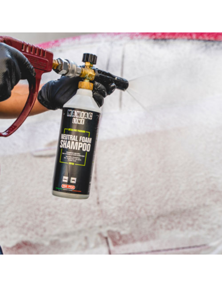 - Shampoo auto 2 in 1: lavaggio a mano con guanto e prelavaggio emolliente con foam gun.