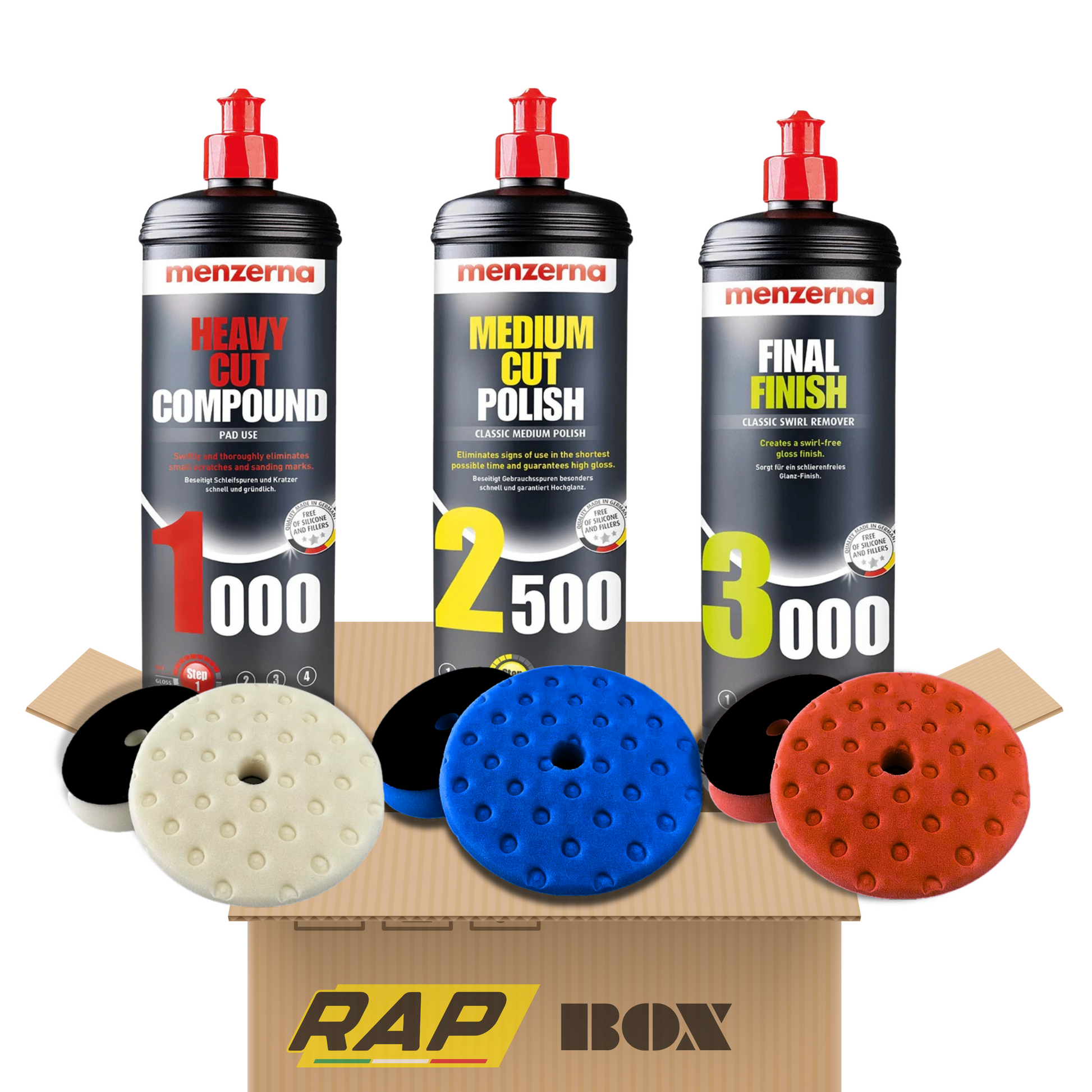 RAP BOX – Lucidatura Pro è la scelta perfetta per chi desidera risultati professionali nella cura della carrozzeria, combinando prodotti di alta qualità con accessori adeguati per ogni fase del processo.