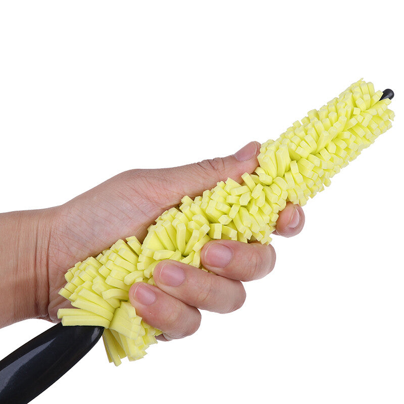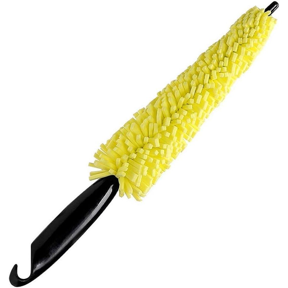 Spazzola flessibile per la pulizia dei cerchi in lega, acciaio e superfici difficili da raggiungere. Il rivestimento in microfibra gialla ad alta densità rimuove sporco, polvere dei freni e contaminazioni senza graffiare.