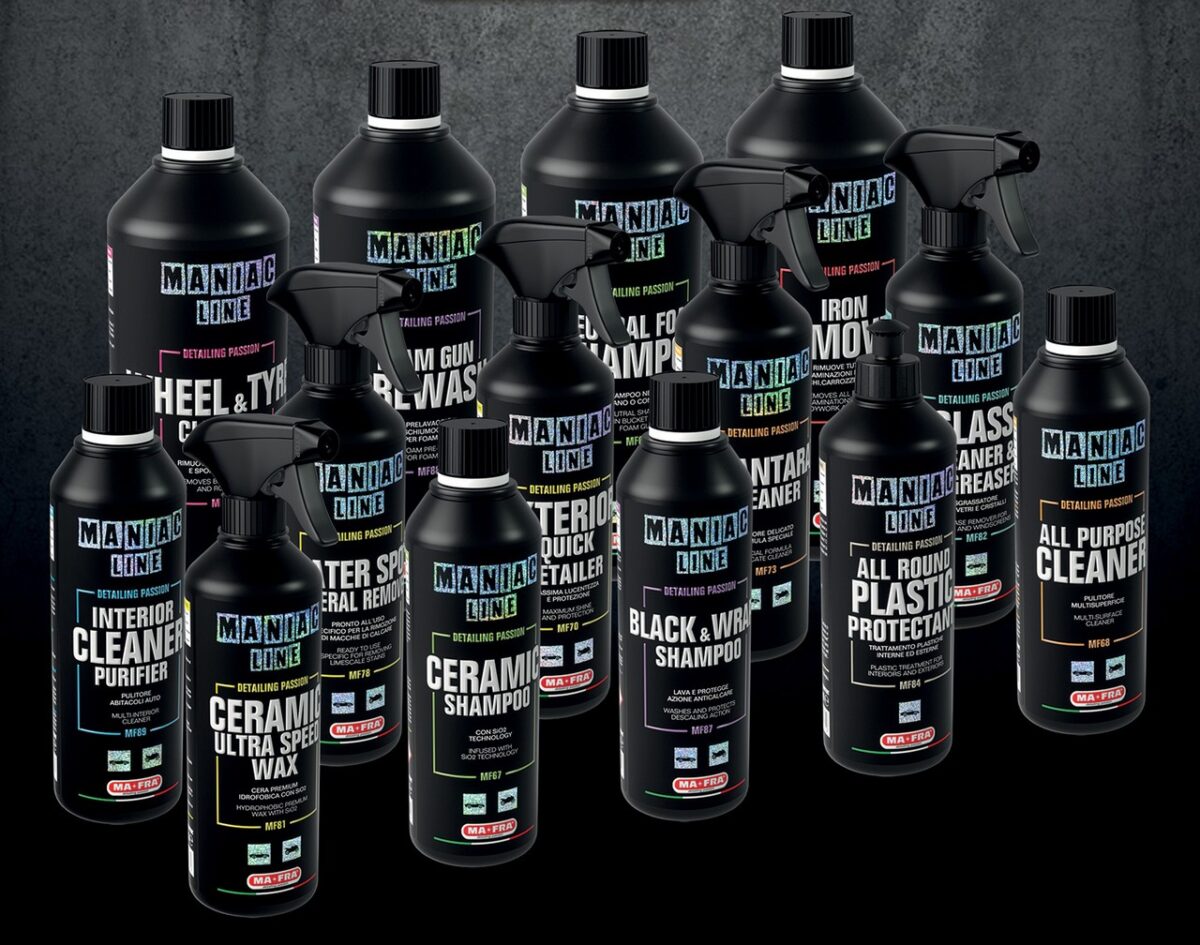 Maniac Line di MAFRA è la linea di prodotti ad alte performance e contenuto tecnologico per i veri appassionati della cura dell’auto, coloro che non si accontentano di una linea di prodotti tradizionale.