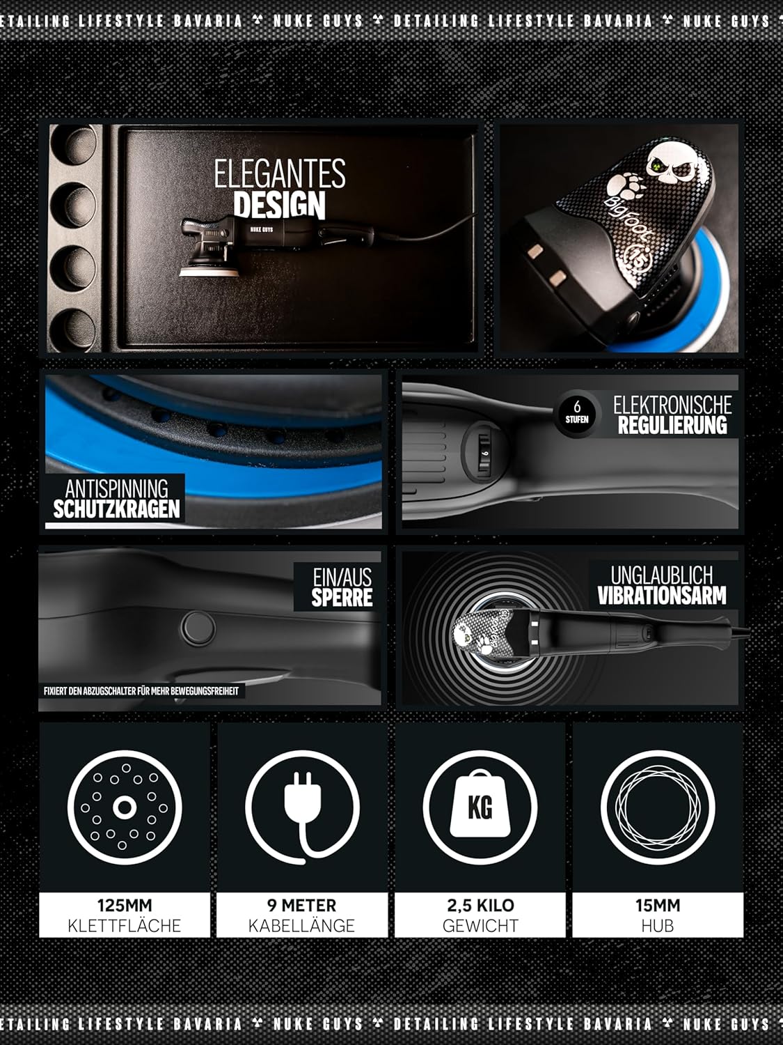 RUPES BigFoot LHR15ES è una lucidatrice rotorbitale professionale progettata per correzione e finitura rapide, con controllo elevato e vibrazioni contenute. È una delle macchine più versatili della linea BigFoot, ideale per lavorare con continuità su pannelli medi e grandi.